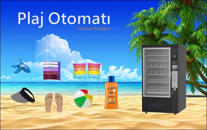 Plaj Otomatı; Plajlarda ve Sahillerde ihtiyaç duyulan tüm ürünleri tek bir cihazda satışını sağlamak için tasarlanmıştır.